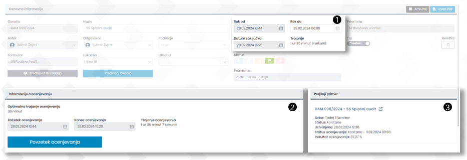 The start and end times of the case (1) are now separated from the start and end times of the assessment (2).