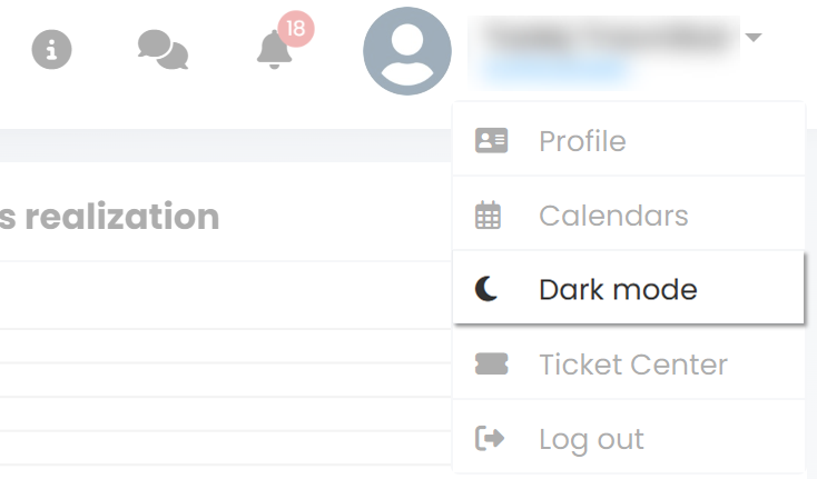 You can switch between Dark and Light mode in the dropdown menu under your name in the top-right corner.