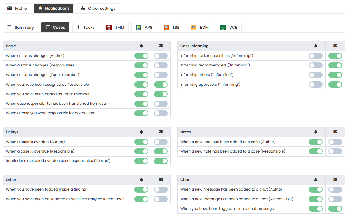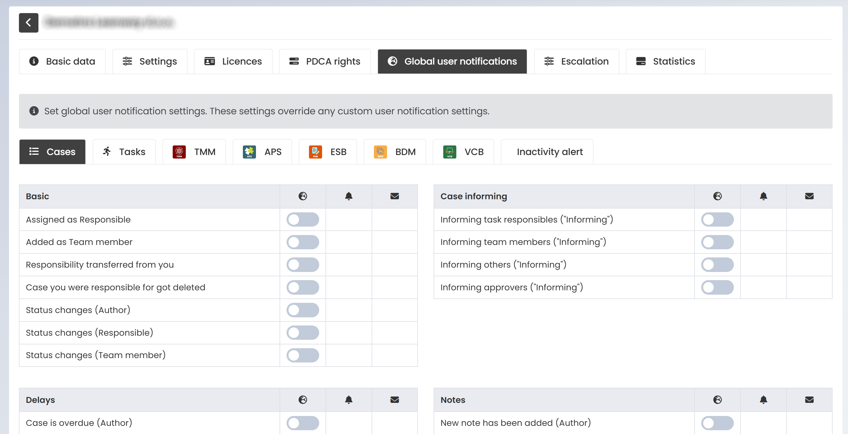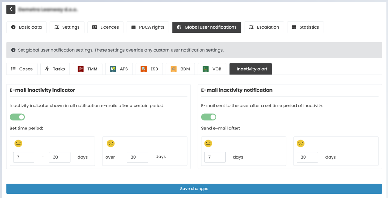 GLOBAL USER NOTIFICATION SETTINGS – Set global (company wide) notification settings