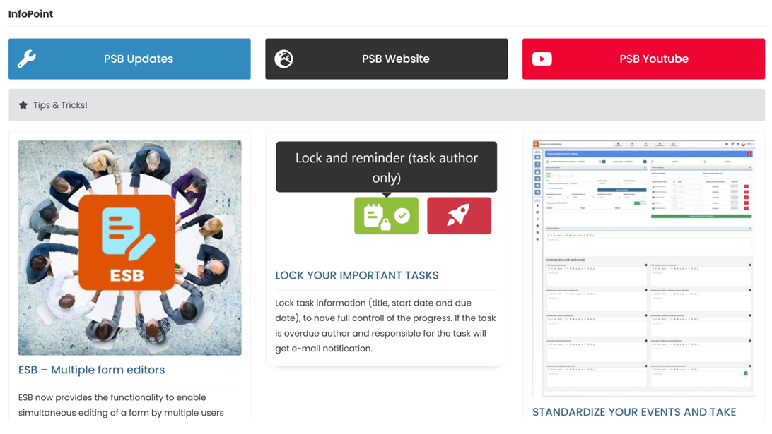 In addition to the usual Tips & Tricks and occasional blog posts, the InfoPoint page now also includes direct links to the PSB updates page, the PSB website, and the PSB YouTube channel.