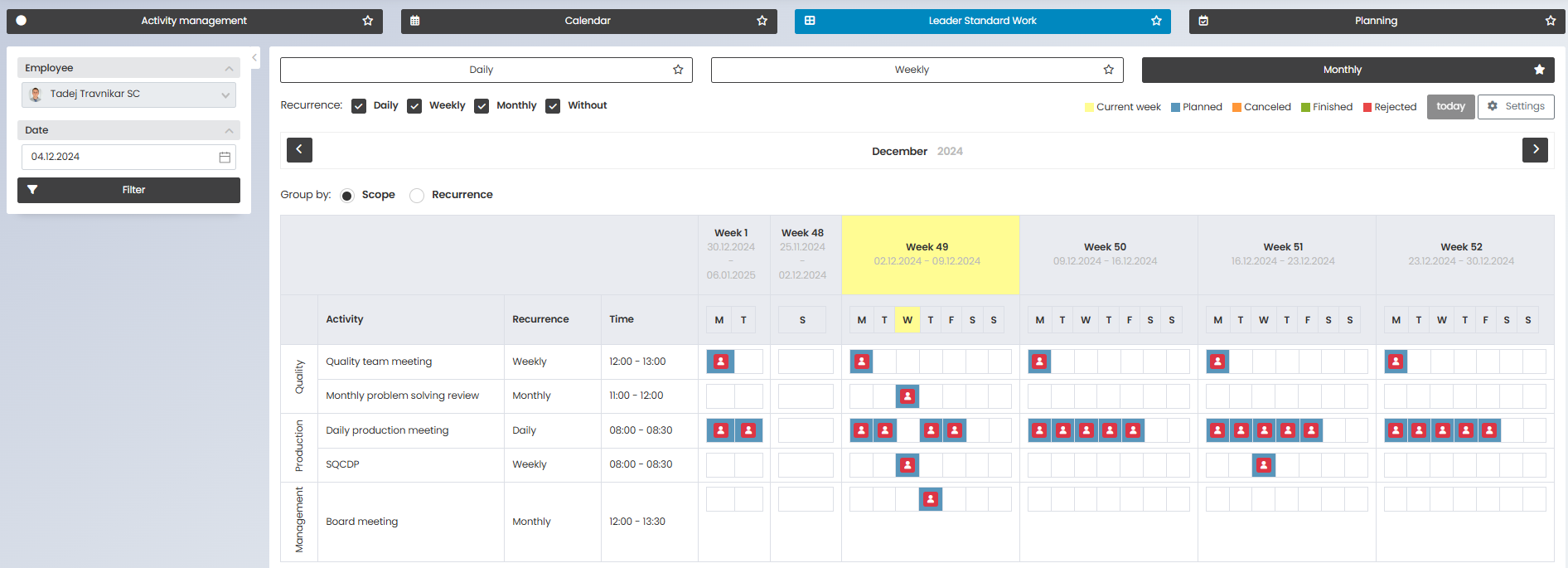 The Leader Standard Work feature has been introduced to the ESB module, offering a powerful new tool designed to improve leadership practices and streamline team management. This feature helps ensure that leaders have consistent, standardized workflows for overseeing team performance, guiding operational activities, and maintaining organizational efficiency.